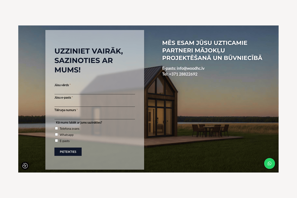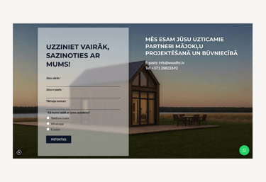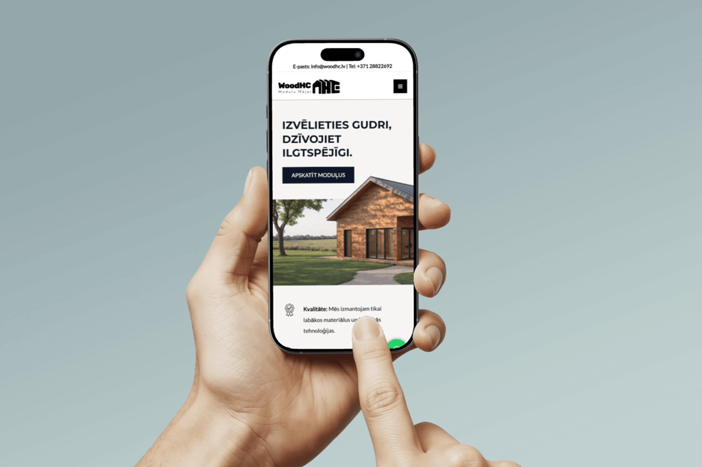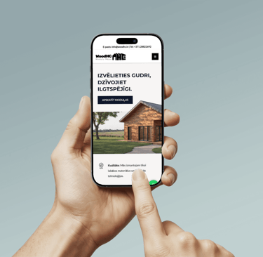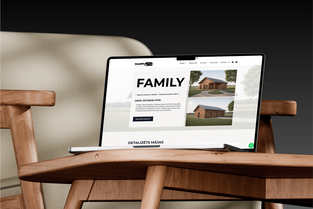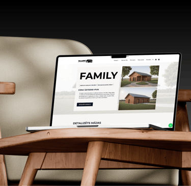 Klientam bija nepieciešama uzņēmuma mājaslapa, kas- Skaidri un estētiski parāda dažādus moduļu koka māju modeļus, saturiski izskaidro katra projekta īpašības (platība, izmaksas, plānojums), iedrošina klientus sazināties un iesaistīties — pieprasīt cenu, uzzināt vairāk.